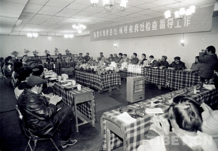 這是西藏那曲地區(qū)基層政權(quán)建設(shè)工作現(xiàn)場(chǎng)會(huì)在文部辦事處(現(xiàn)那曲市尼瑪縣)召開(唐召明1989年12月攝)
