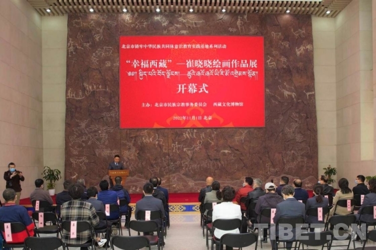中國西藏網(wǎng)訊 11月1日,由中國藏學(xué)研究中心西藏文化博物館和北京市民族宗教事務(wù)委員會聯(lián)合主辦的“幸福西藏——崔曉曉繪畫作品展”在西藏文化博物館開幕。