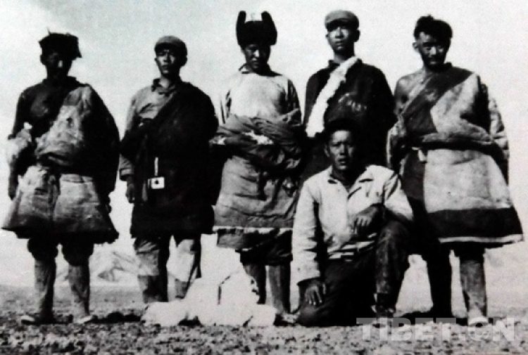 他們馬不停蹄地向色務(wù)庫(kù)加會(huì)合地點(diǎn)挺進(jìn),8月16日到達(dá)預(yù)定地點(diǎn)。第二天,沒(méi)有見(jiàn)到其他考察工作組來(lái)會(huì)合,他們開(kāi)始在周圍尋找。第三天,洛桑丹珍看到一二公里外似乎有個(gè)人影在晃動(dòng),便警惕地躲在一塊巖石后觀察。當(dāng)洛桑丹珍認(rèn)出來(lái)者是尼彭,便迎上前去,而尼彭都快走到洛桑丹珍眼前了也沒(méi)認(rèn)出他來(lái)。因?yàn)樗囊路缫哑茽€不堪,臉被曬得像塊黑炭。直到洛桑丹珍大聲喊著他的名字,尼彭方才醒悟過(guò)來(lái),驚訝地叫著,“唉呀呀,你都成了無(wú)人區(qū)的野人了!”