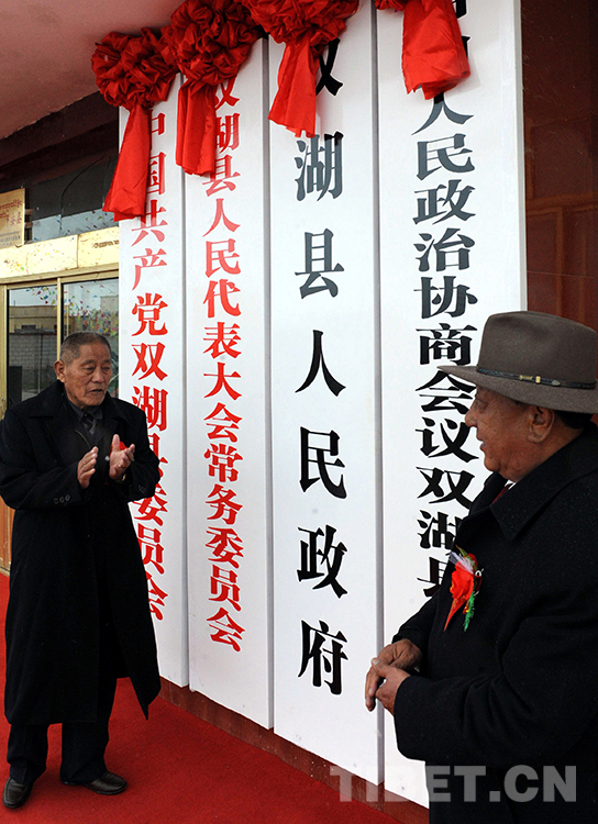 這是洛桑丹珍(左)在為雙湖設(shè)縣掛牌(唐召明2013年7月26日攝)