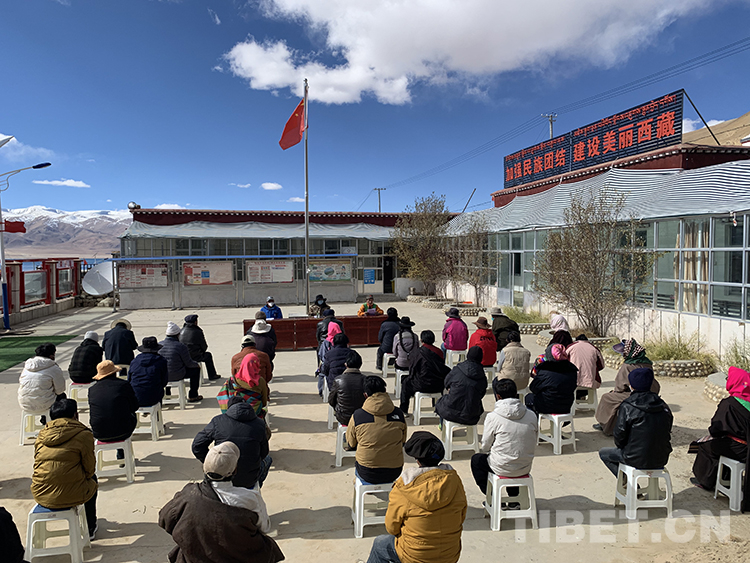 圖為西藏自治區(qū)總工會駐那曲市尼瑪縣文布鄉(xiāng)南居委會第十一批工作隊(duì)組織宣講黨的二十大精神攝影:次仁央宗