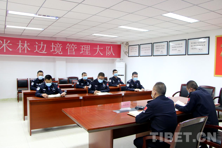 圖為米林邊境管理大隊(duì)民警專題學(xué)習(xí)黨的二十大精神報(bào)告會議 攝影:黃磊