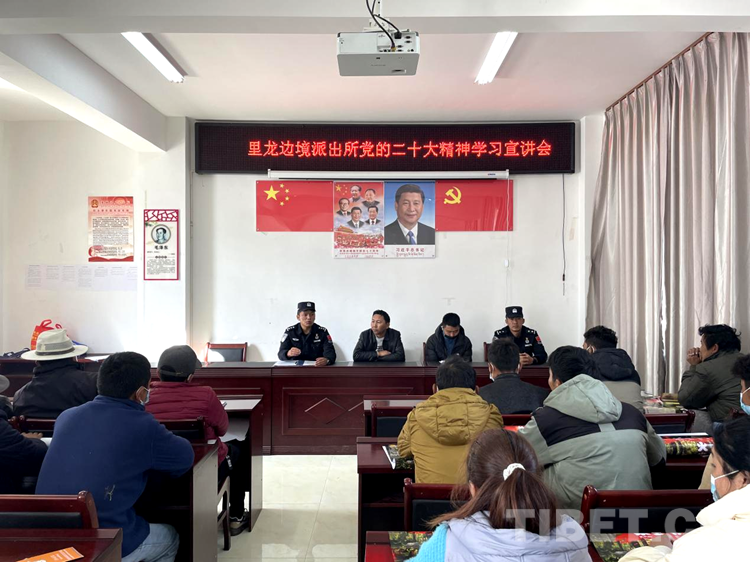 在林芝邊境管理支隊(duì)里龍邊境派出所玉松村的黨群活動中心,民警們宣講著黨的二十大報(bào)告精神熱點(diǎn),普布老人和群眾們聽著黨的“好聲音”臉上露出了燦爛的笑容。