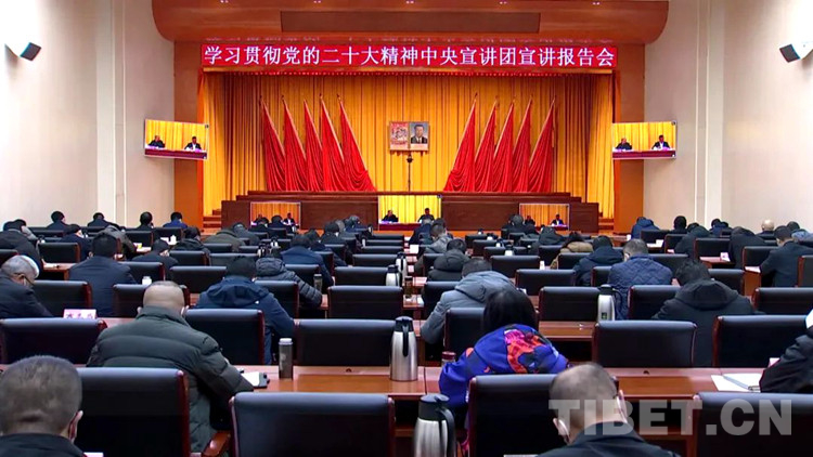 圖為在阿里地區(qū)地委會(huì)堂各單位代表集中收看黨的二十大精神中央宣講團(tuán)報(bào)告會(huì)