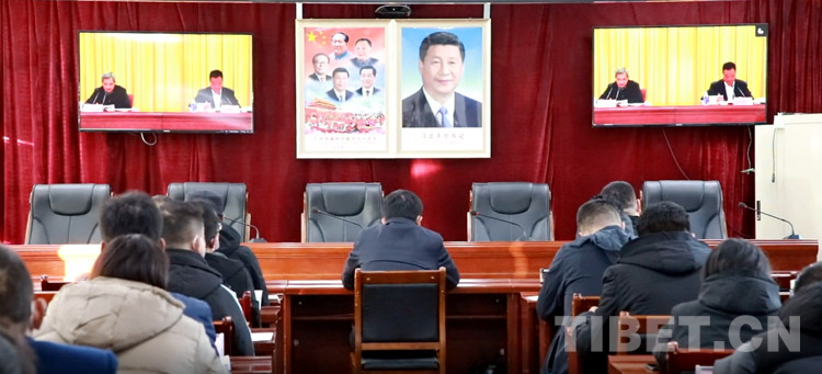 圖為日土縣自然資源局干部職工集中收看黨的二十大精神中央宣講團(tuán)報(bào)告會(huì)