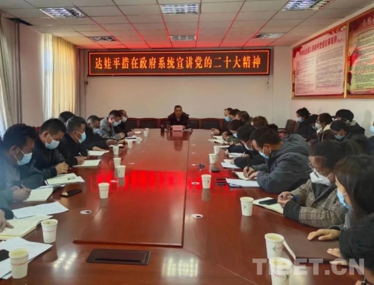 中國(guó)西藏網(wǎng)訊 日前,西藏自治區(qū)阿里地區(qū)札達(dá)縣召開(kāi)學(xué)習(xí)貫徹黨的二十大精神會(huì)議,札達(dá)縣委副書(shū)記、縣長(zhǎng)達(dá)娃平措在縣政府系統(tǒng)宣講黨的二十大精神,旨在引導(dǎo)廣發(fā)黨員干部深入學(xué)習(xí)宣傳貫徹黨的二十大精神,切實(shí)把廣大黨員干部的思想行動(dòng)統(tǒng)一到黨的二十大精神上來(lái),把力量凝聚到實(shí)現(xiàn)黨的二十大確定的各項(xiàng)目標(biāo)任務(wù)上來(lái)。
