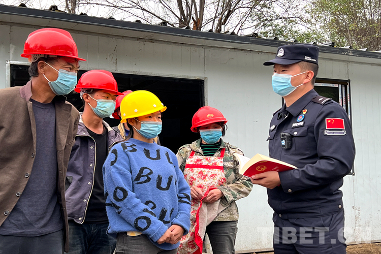 圖為派邊境派出所民警在工地向務(wù)工人員開(kāi)展普法宣傳