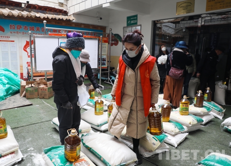 中國(guó)西藏網(wǎng)訊 近日,在西藏自治區(qū)拉薩市城關(guān)區(qū)八廓街道魯固社區(qū)居委會(huì)的院子里,不時(shí)傳來陣陣歡聲笑語,在院子的正中間,一袋袋大米、面粉,一桶桶食用油碼放整齊。