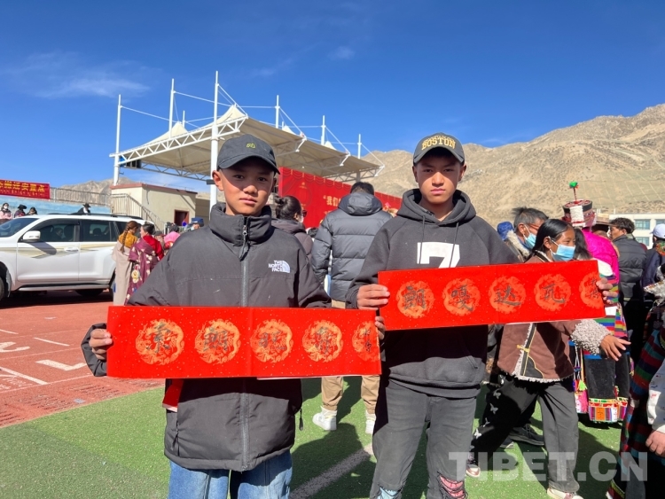 圖為群眾拿到寫(xiě)有“扎西德勒”字樣的書(shū)法作品 攝影:德吉卓瑪