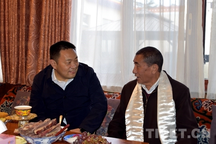 嘎瑪澤登一行先后來到,在拉薩的黨外省級領(lǐng)導(dǎo)干部珠康·土登克珠、策墨林·單增赤列、甲熱·洛桑丹增家中,送去黨和政府對他們的問候和新年祝福,看望慰問黨外知識分子代表花德米和宗教界代表人士江白拉桑、扎西堅(jiān)參。