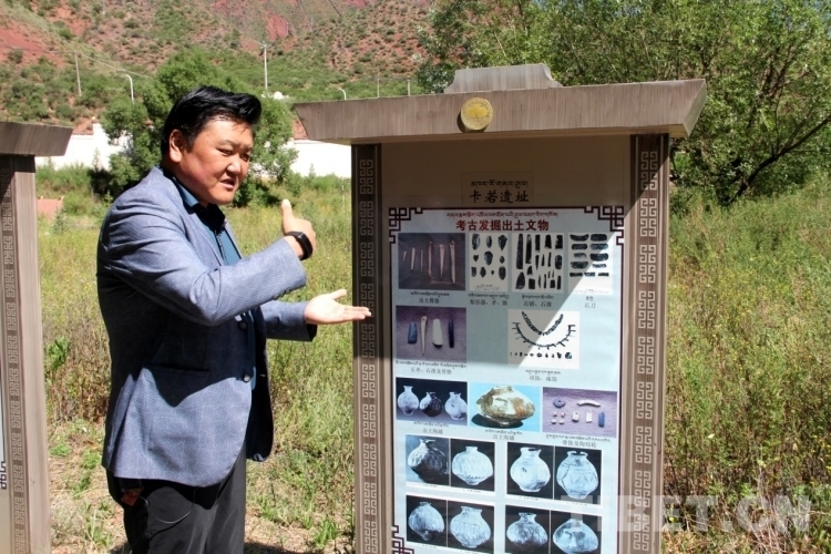 圖為洛松曲扎介紹卡若遺址出土文物攝影:王茜