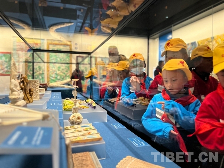 西藏博物館設(shè)有基本陳列“雪域長歌——西藏歷史與文化”“離太陽最近的人——西藏民俗文化”、專題陳列“雪域豐碑——西藏革命文物”、西藏百萬農(nóng)奴解放紀(jì)念館。30名學(xué)生跟隨帶隊老師的腳步走向“雪域長歌——西藏歷史與文化”陳列館,此館分為“史前時期”“唐宋時期”“元明時期”“清代民國時期”“黨的光輝照邊疆 邊疆人民心向黨”五個部分。學(xué)生們在講解員的帶領(lǐng)下按序參觀,感受西藏的悠久歷史和燦爛文化,了解歷朝歷代中央政府對西藏的有效治理,傾聽西藏人民與全國各族人民的交往交流交融……學(xué)生們聽著久遠(yuǎn)的故事,看著一件又一件極具歷史縱深感的展品,滿眼都是求知欲和好奇心?!拔覀円郧敖M織的愛心公益活動都是到西藏偏遠(yuǎn)地區(qū)、條件比較落后的學(xué)校捐贈學(xué)習(xí)用品、生活物資,但發(fā)現(xiàn)這樣只是解決了他們物質(zhì)上一些困難。外面的世界是什么樣的,其實對于大多數(shù)孩子來說是一無所知。”看著孩子們對太多東西充滿好奇,江蘇商會黨委聯(lián)合黨支部組織委員感慨地說道:“這次我們幾個承辦單位克服種種困難,做了一次嘗試??吹胶⒆觽兂两渲?,這個活動也就有了意義?!?/p>