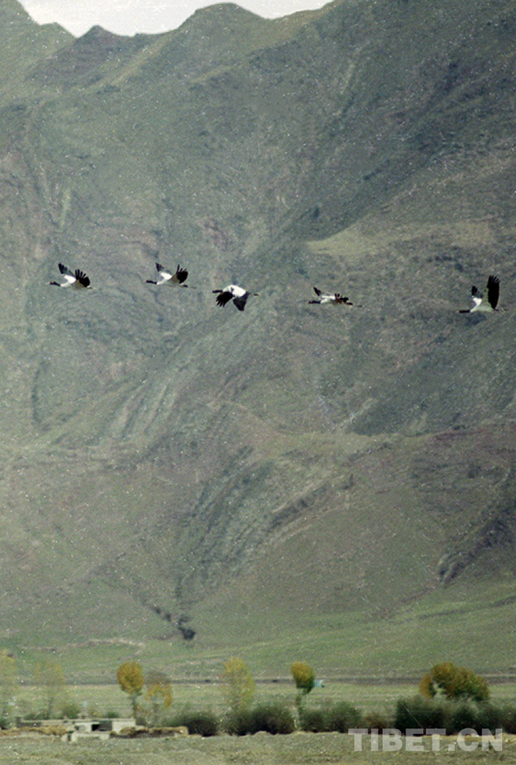 為適應(yīng)高原氣候的季節(jié)變化,黑頸鶴每年都要進(jìn)行遷徙,否則不僅難以抵御高原嚴(yán)寒,也會(huì)因找不到食物而被餓死。故黑頸鶴每年九、十月份,由藏北申扎等縣向南遷徙到雅魯藏布江中游河谷地帶及其主要支流——拉薩河與年楚河谷地帶越冬,至翌年三四月開(kāi)始飛到藏北草原“生兒育女”。