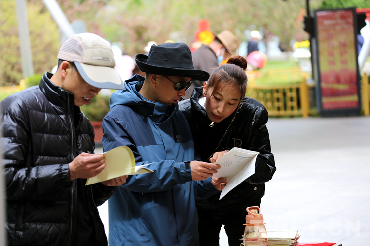 圖為在現(xiàn)場參加活動(dòng)的群眾、游客翻閱宣傳手冊并聽取宣傳人員的講解 攝影:王佳豪