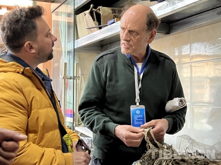 圖為5月16日參訪團成員在農民專業(yè)合作社了解藏紙原材料“狼毒草” 攝影:德吉卓瑪