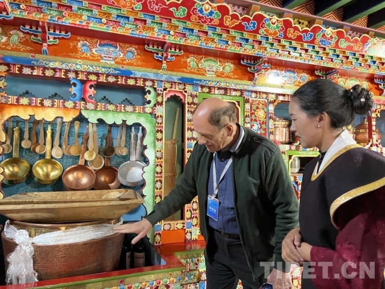 17日,參訪團來到林芝市八宜區(qū)魯朗鎮(zhèn)扎西崗村考察扎西崗村村容村貌、旅游產業(yè)帶動群眾增收致富等情況。參訪團成員們對藏族群眾家擺放的家具、藏柜、墻壁上的繪畫等充滿好奇。