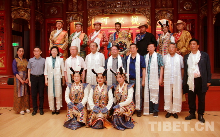 圖為西藏自治區(qū)拉薩市城關(guān)區(qū)娘熱民間藝術(shù)團(tuán)的藝術(shù)家們與“戲舞雪域——多元文化視野中的藏戲藝術(shù)推廣研討會(huì)”專家合影 攝影:劉莉