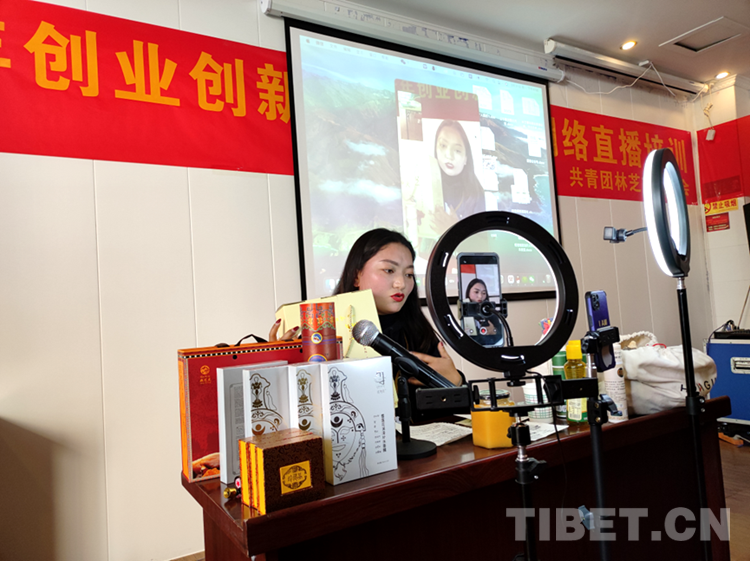 圖為次仁吉通過直播銷售家鄉(xiāng)特產(chǎn) 受訪者供圖