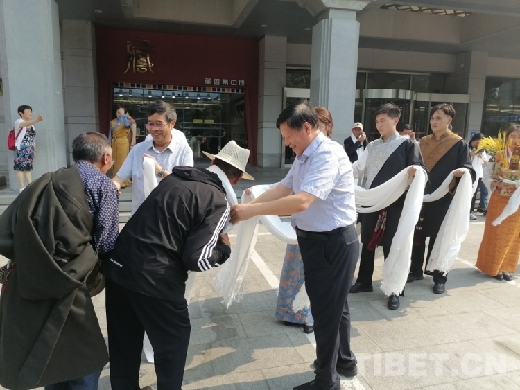 圖為北京建藏援藏工作者協(xié)會相關(guān)負(fù)責(zé)人為西藏村居兩委基層干部赴京考察學(xué)習(xí)團(tuán)獻(xiàn)上哈達(dá) 攝影:王茜