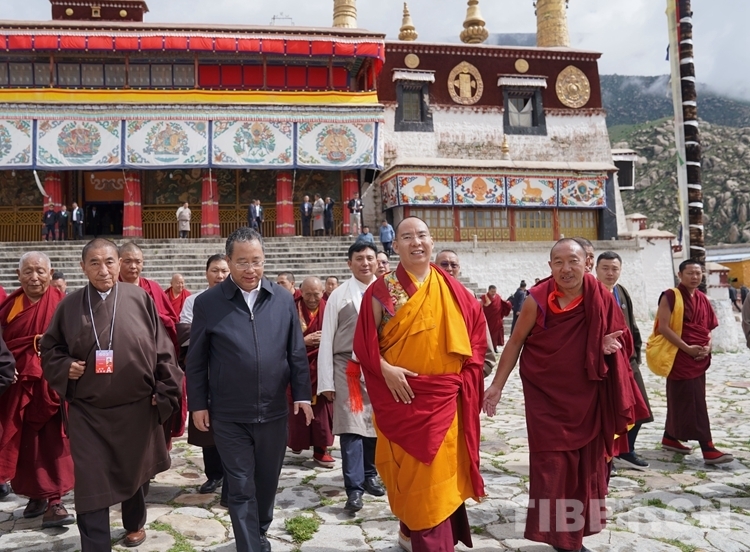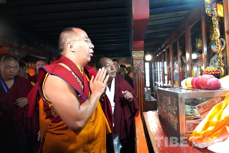 7月4日,全國政協(xié)常委、中國佛教協(xié)會副會長、中國佛教協(xié)會西藏分會會長班禪額爾德尼·確吉杰布來到拉薩市哲蚌寺禮佛朝拜、解經(jīng)釋教,這是班禪首次來到哲蚌寺禮佛朝拜。