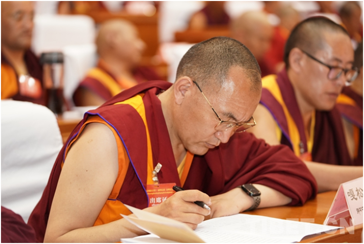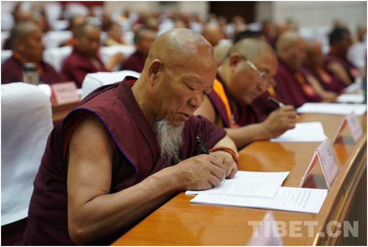 “加大‘導(dǎo)’的力度,深化‘三個意識’教育,要將開展‘三個意識’教育和常態(tài)化推進(jìn)‘四條標(biāo)準(zhǔn)’教育實(shí)踐活動有機(jī)銜接貫通起來。”班禪說,引導(dǎo)全體理事和寺廟僧尼樹牢國大于教、國法大于教規(guī)、教民首先是公民的普遍認(rèn)知,愛黨愛國愛人民,堅(jiān)決維護(hù)祖國統(tǒng)一和民族團(tuán)結(jié);踐行社會主義核心價值觀,弘揚(yáng)中華優(yōu)秀傳統(tǒng)文化;尊法學(xué)法守法用法,堅(jiān)決維護(hù)社會和諧穩(wěn)定。