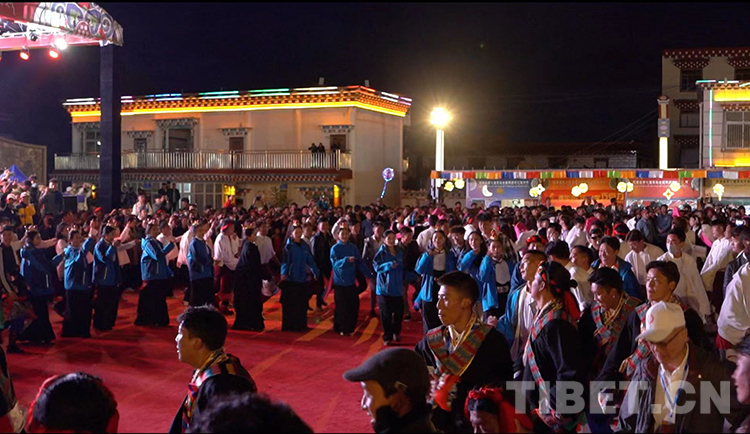 傍晚時分,芒康各族兒女身著盛裝匯集芒康縣弦子廣場,翹首以盼極具芒康特色的盛大弦子歌舞晚會。
