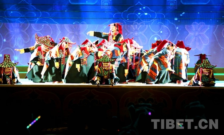 隨后盛大的開幕式文藝演出如期而至。演出共分為《悠遠古韻》《詩意微芒》《如炬經(jīng)典》《輝煌盛世》四個篇章?!队七h古韻》篇章為大型情景表演,結(jié)合古格壁畫為開場表演,展現(xiàn)出阿里人民群眾的精神面貌和獨特的阿里神韻。《詩意微芒》匯集阿里地區(qū)諸多極具代表性的國家級非物質(zhì)文化遺產(chǎn)節(jié)目,展現(xiàn)阿里地區(qū)悠久燦爛的古代文明遺存?!度缇娼?jīng)典》篇章通過不同舞蹈,展現(xiàn)阿里獨具特色的民間歌舞文化。《盛世弦歌》則展現(xiàn)了阿里地區(qū)以熱情昂揚的姿態(tài)在全力以赴推動建設雪域高原“西部明珠”中取得的一系列可喜的成績。