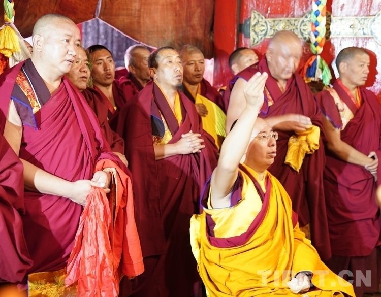 圖為班禪與僧眾共同誦經(jīng)祈福 攝影:王淑