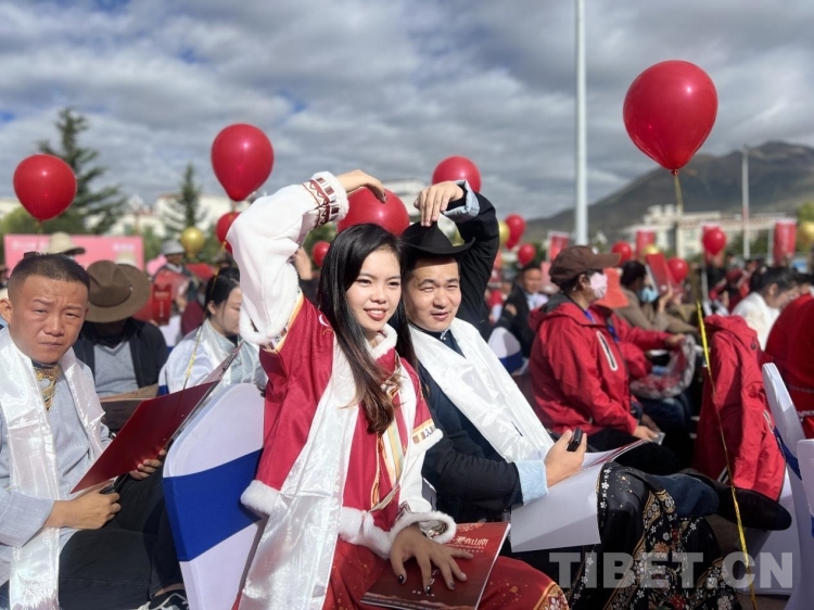 圖為民族團(tuán)結(jié)模范夫妻現(xiàn)場證婚 攝影:德吉卓瑪