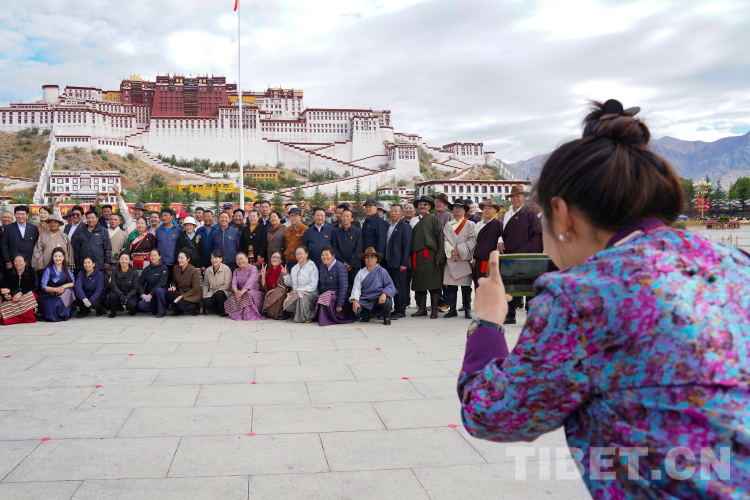 圖為升旗儀式結束后各族群眾在布達拉宮廣場前合影。 攝影:王淑