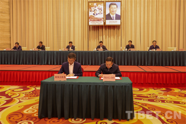 圖為國家文物局和西藏自治區(qū)人民政府簽訂《關于加強西藏文物保護利用合作協(xié)議》