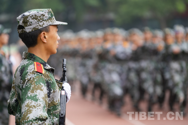 圖為西藏民族大學(xué)2023級(jí)學(xué)生軍訓(xùn)匯報(bào)表演現(xiàn)場(chǎng) 攝影:趙振宇