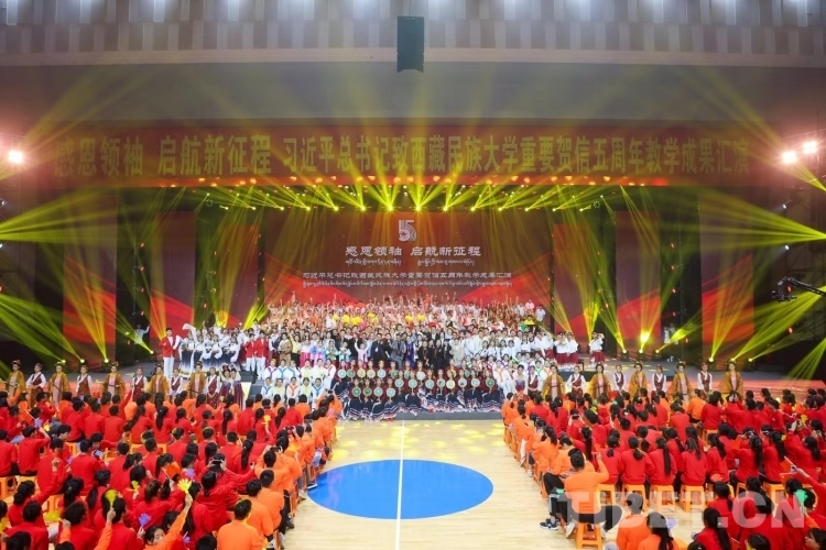 圖為習近平總書記致西藏民族大學重要賀信五周年教學成果匯演現(xiàn)場