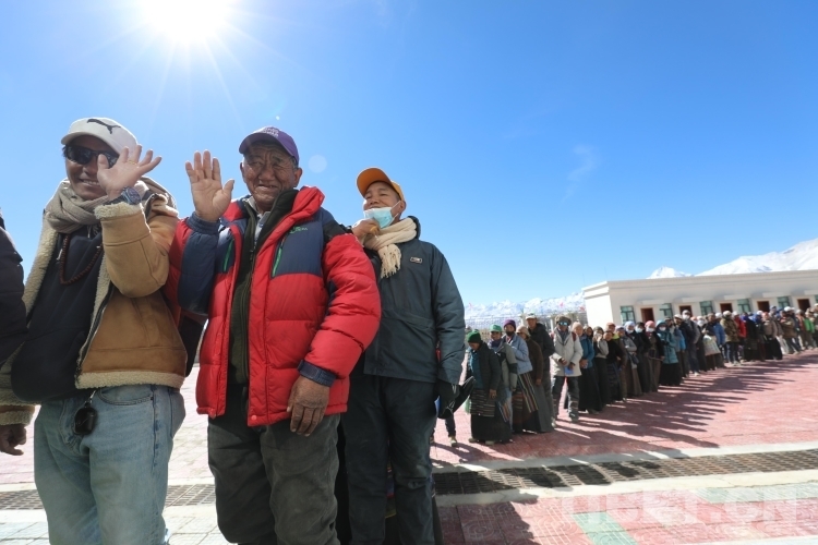 圖為在里孜口岸開(kāi)通首日等待通關(guān)的群眾排起長(zhǎng)龍 攝影:郭遠(yuǎn)敬