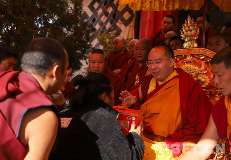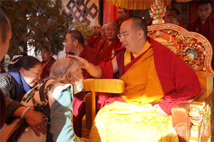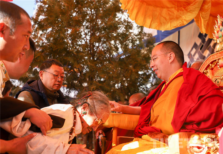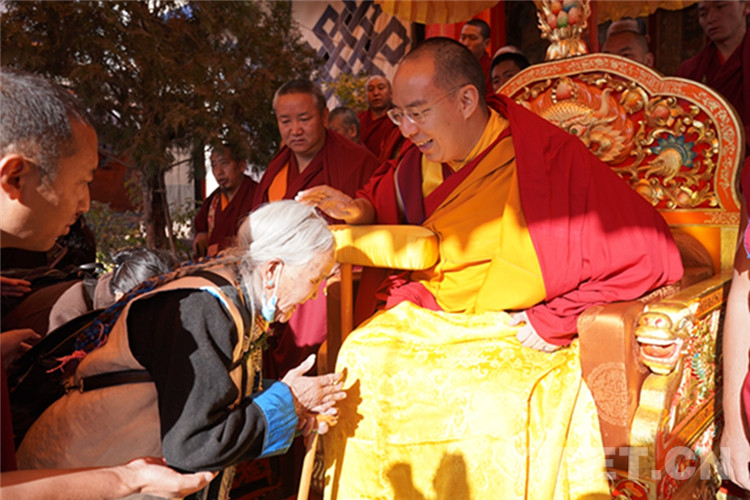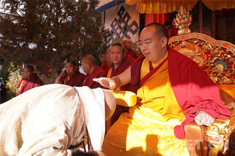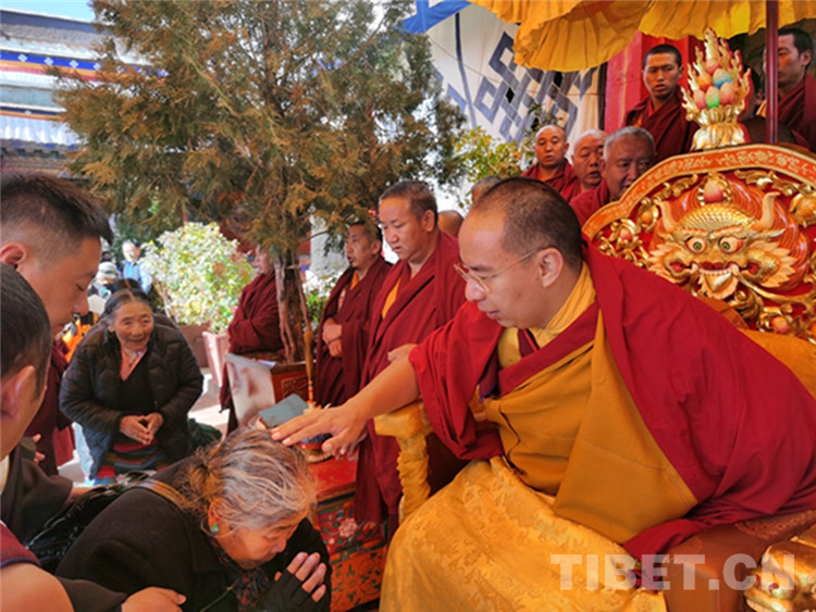中國(guó)西藏網(wǎng)訊 11月13日至14日,全國(guó)政協(xié)常委、中國(guó)佛教協(xié)會(huì)副會(huì)長(zhǎng)、中國(guó)佛協(xié)西藏分會(huì)會(huì)長(zhǎng)班禪額爾德尼?確吉杰布在西藏日喀則市扎什倫布寺多加大院為信教群眾摸頂賜福,這是近年來(lái)規(guī)模最大的一次班禪摸頂賜?;顒?dòng)。圖為班禪摸頂賜福 攝影:王淑(中國(guó)西藏網(wǎng) 記者/王淑 賈華加)