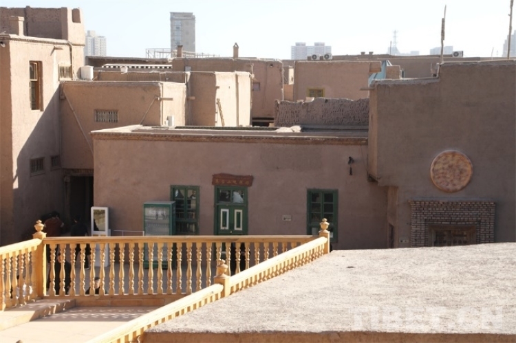 中國(guó)西藏網(wǎng)訊 在中國(guó)新疆維吾爾自治區(qū)喀什市,在繁榮熱鬧的喀什古城對(duì)面,僅一條馬路之隔,坐落著代表喀什傳統(tǒng)建筑靈魂的高臺(tái)民居。高臺(tái)民居又名闊孜其亞貝希老城區(qū),它位于吐曼河西岸一處高約30米、長(zhǎng)寬約400米的黃土高臺(tái)上,其面積約57000平方米。“闊孜其亞貝希”有高崖土陶的意思,因而高臺(tái)民居又被稱為高崖上的土陶人家。