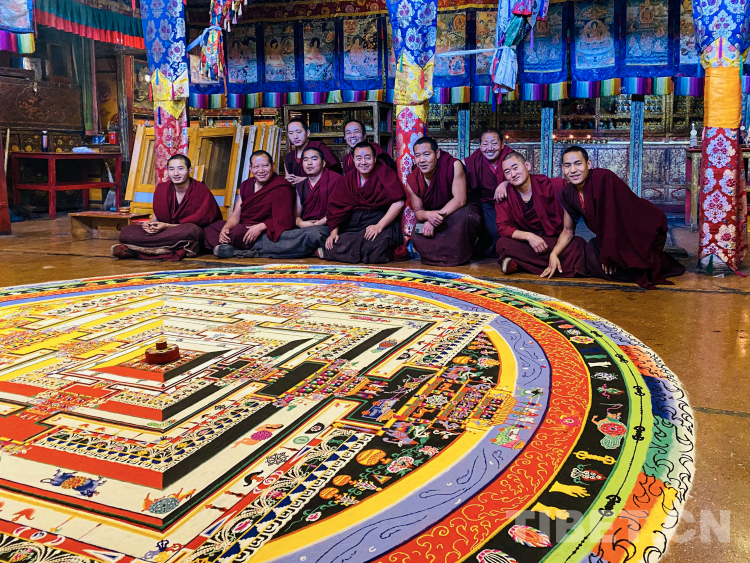 圖為扎實(shí)倫布寺時(shí)輪經(jīng)剛彩砂壇城及其繪制僧人 圖片由慈誠(chéng)提供