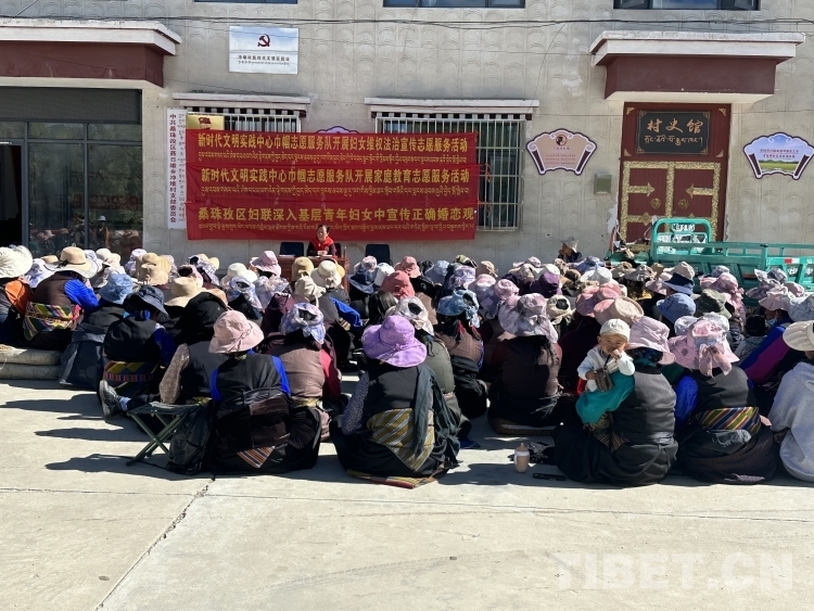 圖為尼瑪潘多正在婦女中開展宣講工作 圖由受訪者提供