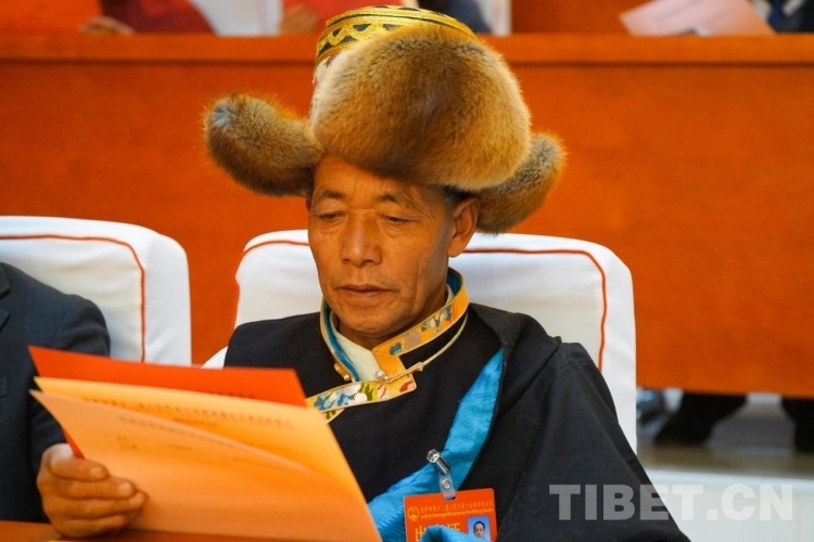 圖為拉薩市第十二屆人大代表認(rèn)真閱讀大會選票 攝影:旦曲