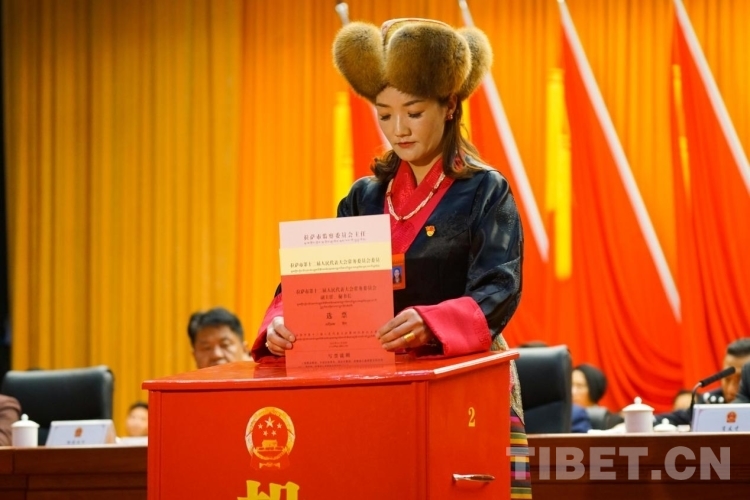 圖為拉薩市第十二屆人大代表投下莊嚴(yán)神圣的選票 攝影:旦曲