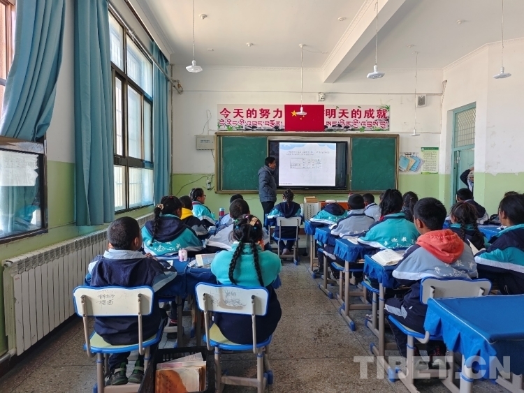 圖為雄麥鄉(xiāng)小學(xué)六年級(jí)的學(xué)生在暖和的教室里上數(shù)學(xué)課 攝影:頓珠