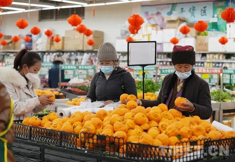 資料圖:2023年春節(jié)、藏歷新年前夕山南市各族群眾在超市選購(gòu)年貨