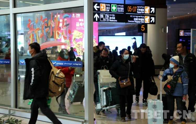 圖為春運(yùn)首日,抵達(dá)拉薩貢嘎機(jī)場(chǎng)的乘客 攝影:王佳豪