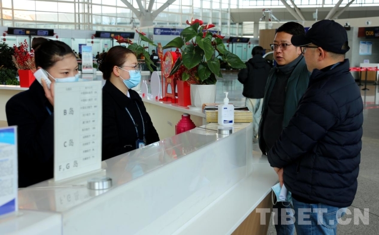 春運(yùn)期間,西藏各機(jī)場(chǎng)航站樓到處都是喜慶的‘中國紅’,洋溢著歡樂祥和的節(jié)日氛圍?!按蔚┳楷斃先私衲暌皆诤D瞎ぷ鞯膬鹤蛹抑羞^年,這是她第一次乘坐飛機(jī)出行。老人高興地告訴記者:“先前還擔(dān)心自己不太會(huì)說普通話,看不懂漢字,坐飛機(jī)會(huì)非常麻煩,來了之后才知道,標(biāo)識(shí)上都有藏語,還有志愿者用藏語為我解釋,太貼心了?!?/span>