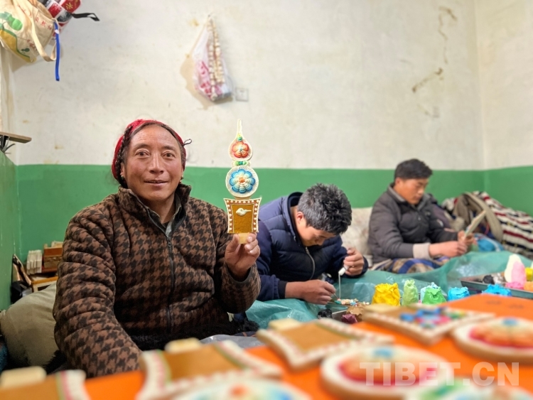 丹增朗杰每天和爸爸、大哥一起從早上8點(diǎn)左右開始捏制,一直持續(xù)到深夜24時(shí)許,按圖案復(fù)雜程度,一天可以捏制近7到10余對(duì)酥油花。“雖然有點(diǎn)辛苦,但我很喜歡寒假和家人一起來(lái)拉薩制作酥油花。”丹增朗杰說,他從14歲開始學(xué)習(xí)制作酥油花,覺得靠自己的勞動(dòng)掙錢能讓自己擁有成就感。