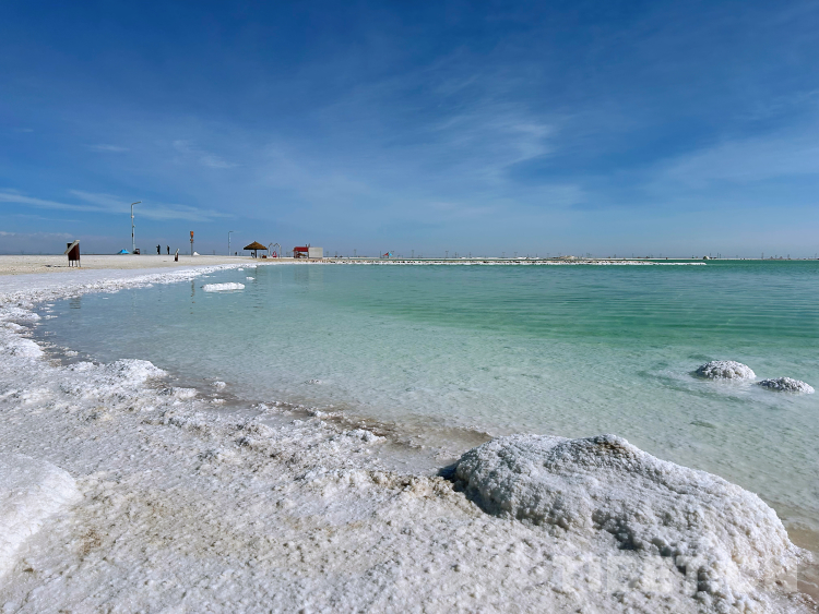 湖岸邊厚實的白色鹽灘。李一凡 攝