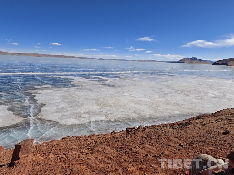 錯那湖湖面海拔4600米左右,面積400多平方公里,是世界上海拔最高的淡水湖,更有冰泡、冰裂、冰推等奇妙的自然景觀。當氣溫急劇下降時,水溫也驟降,湖底產(chǎn)生的氣體在上升過程中被凍在冰中,形成許多細小的白色氣泡,懸浮在厚厚的冰層之中。湖水表面一層被藏北的朔風(fēng)快速凍結(jié)成冰,部分碎冰在岸邊堆積,形成隆起的“冰岸線”。又由于初春晝夜溫差較大,湖冰崩裂,形成網(wǎng)狀的冰裂紋路。這些透明裂紋從岸邊開始,像潮水一樣漫過平地,漫過羌塘草原腹地,漫到天邊,把羌塘大地裝扮成一個冰晶縱橫交錯的世界。(中國西藏網(wǎng) 文/李一凡 張萌萌 龍真多吉)