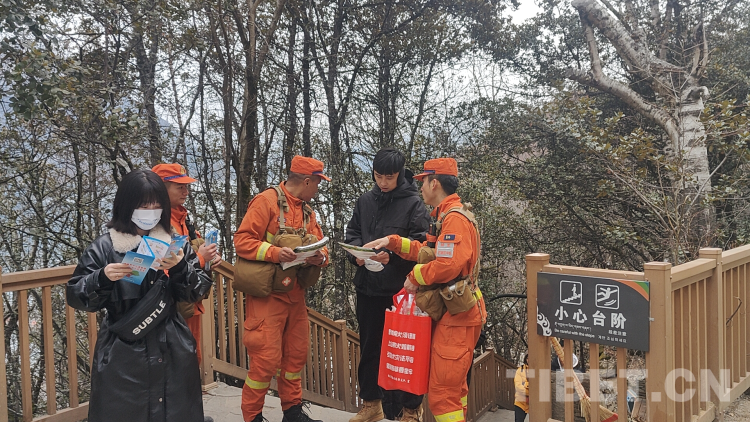 “您好,您在游玩過程中一定要注意安全用火,如發(fā)現(xiàn)火情,請在確保自身安全的前提下?lián)艽?2119報警電話……”森林消防指戰(zhàn)員在人流密集的景區(qū)設(shè)立執(zhí)勤點,向來往游客發(fā)放防火常識宣傳手冊,面對面地科普森林防火常識,嚴格管控野外火源、及時排除火險隱患。