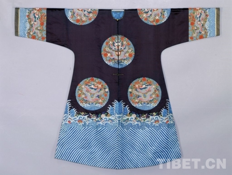 圖為石青色緞平金彩繡緝米珠八團(tuán)龍袷褂團(tuán)正龍紋 圖片來(lái)源:故宮博物院