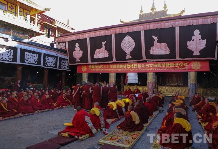 中國西藏網(wǎng)訊 2月28日,西藏自治區(qū) 2024年度藏傳佛教學(xué)經(jīng)僧人考核晉升格西拉讓巴學(xué)位立宗答辯暨頒證儀式在拉薩大昭寺舉行。
